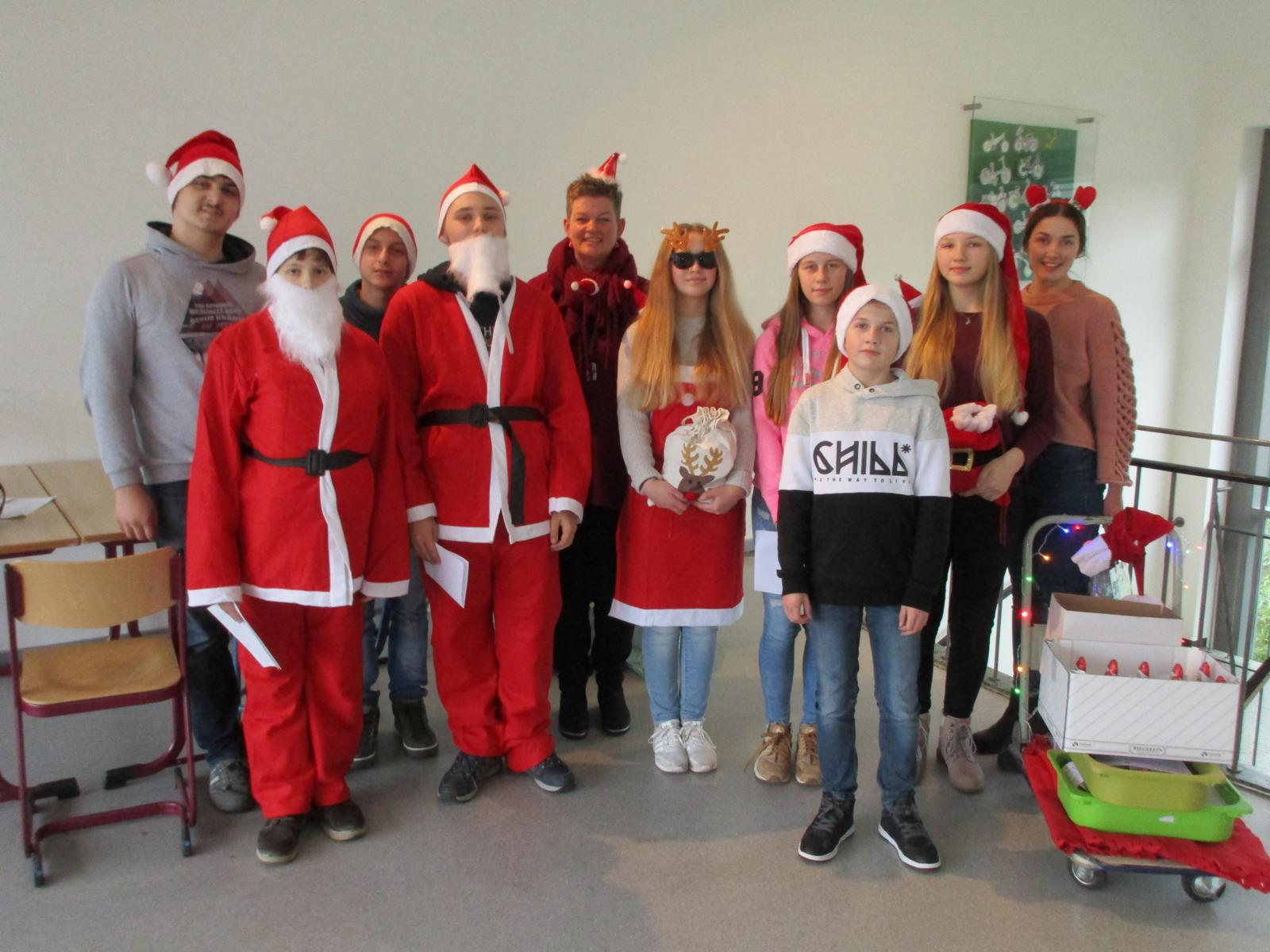Viele, viele Nikolausgrüße -sowohl schriftlich als auch in Schokoladenform- hatte der Nikolaus heute in der Sekundarschule zu verteilen. Zum Glück war er nicht allein: Ein ganzes Team aus Engeln un...
