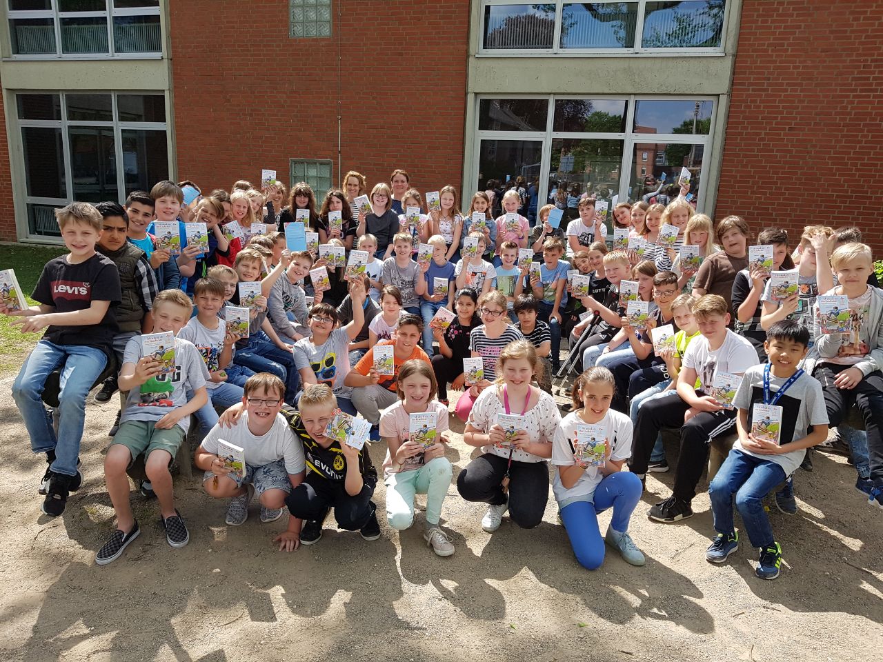 In der Steverbuchhandlung war gestern die Jahrgangsstufe fünf zu Gast. Nach einer Quizrallye durch die Stadt erhielten dort alle Schülerinnen und Schüler das Buch "Lenny, Melina und die Sache mit d...