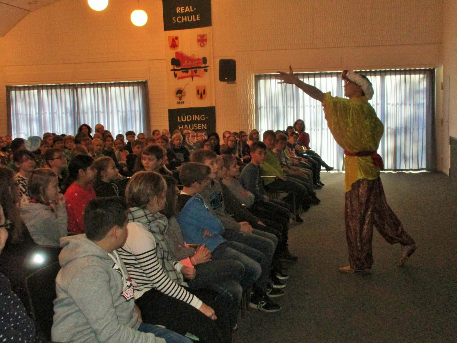 Die Weihnachtsgeschichte in englischer Sprache präsentierte die Klasse 5c mit dem Klassenleitungsteam Silke Daldrop und Jörg Leefers im Rahmen des Monatstreffs in der Aula des Schulzentrums. Di...