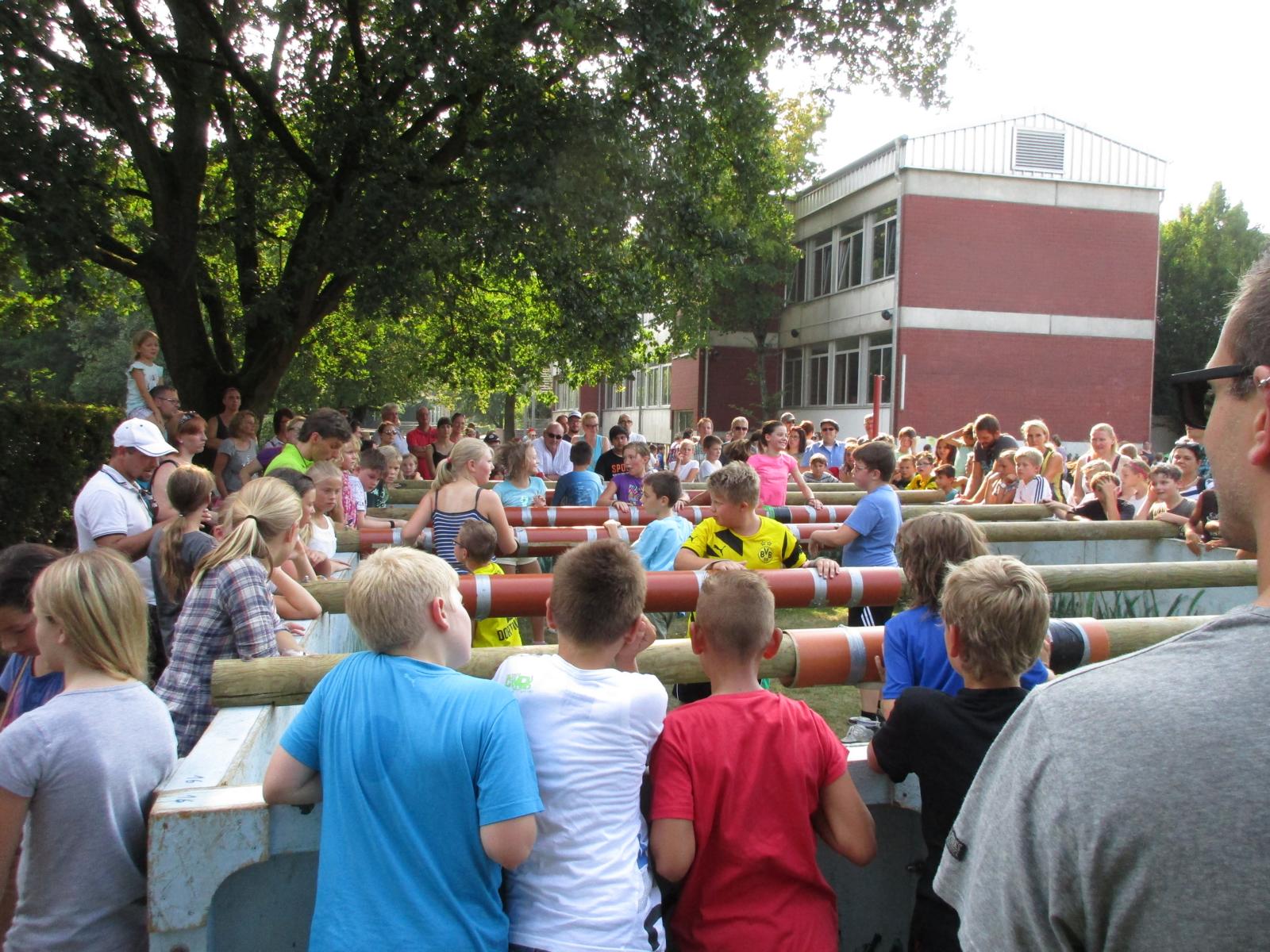 Bei strahlendem Sonnenschein trafen sich die Schülerinnen und Schüler der neuen fünften Klassen mit ihren Familien und dem Kollegiumsteam zum traditionellen Menschenkickerturnier. Während die SchÃ...