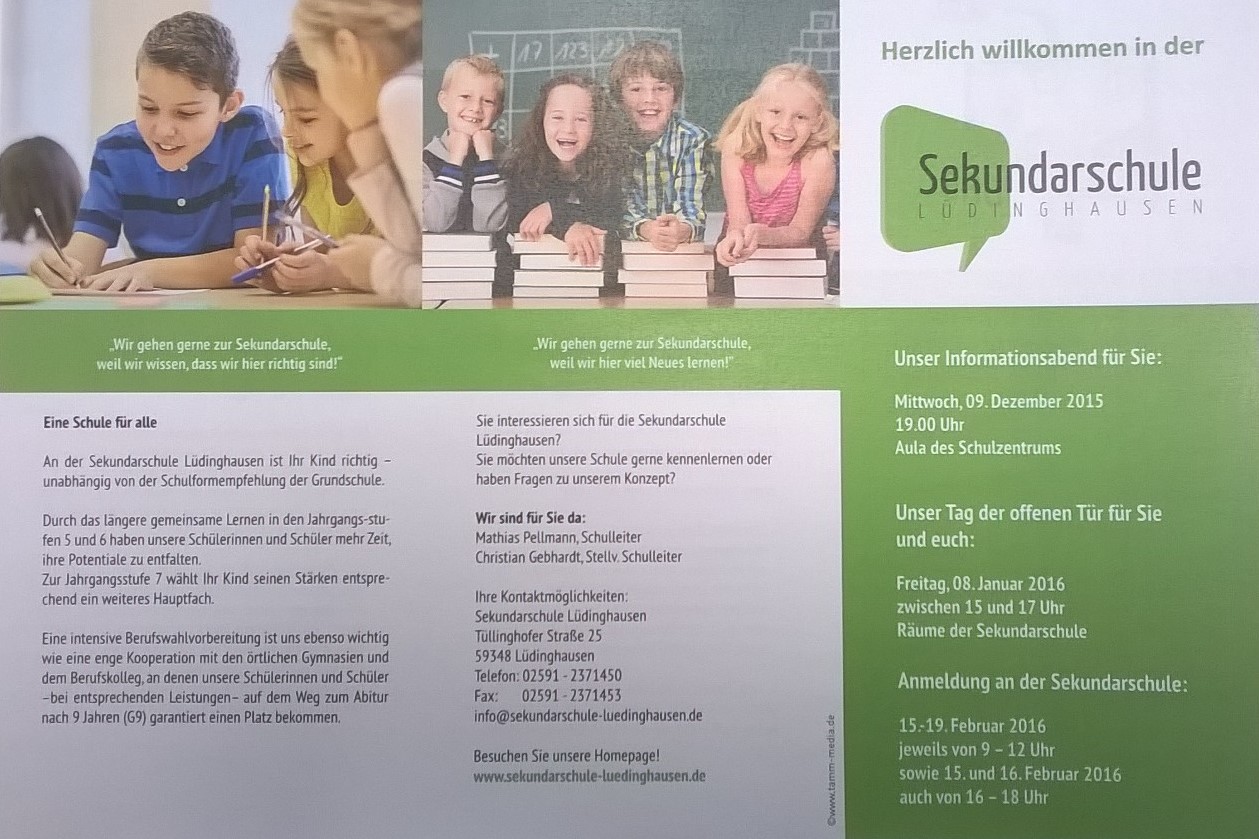 Sie möchten sich über die Sekundarschule Lüdinghausen informieren? Sie interessieren sich für Informationsveranstaltungen und Anmeldetermine? Unsere neue Informationsbroschüre befindet sich im Dr...