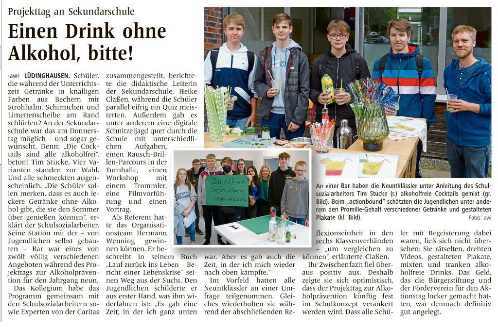 Einen ganzen Tag lang erlebten und erfuhren die Schülerinnen und Schüler der Jahrgangsstufe 9 Wissenswertes rund um das Thema Alkohol. An mutimedialen Stationen wurde probiert -natürlich ohne Alkoh...