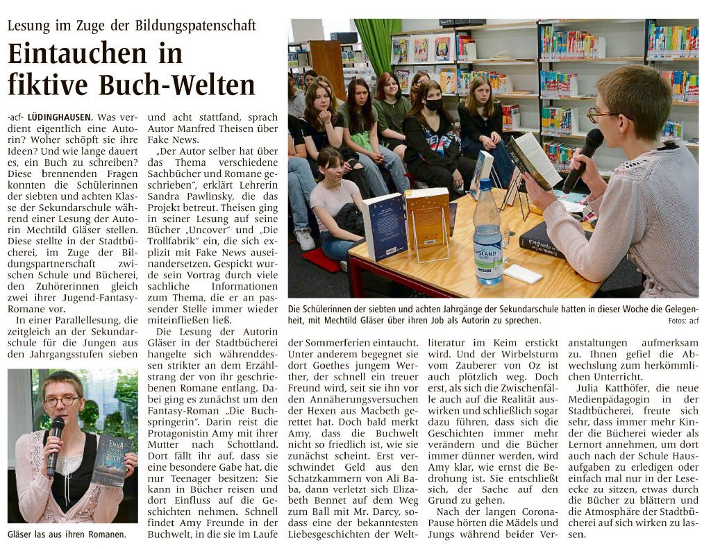 Schriftsteller zum Anfassen - wo gibt es das? In der Aula der Sekundarschule und in der Stadtbibliothek hatten die Schülerinnen und Schüler der Sekundarschule die Gelegenheit, prominente Autoren liv...