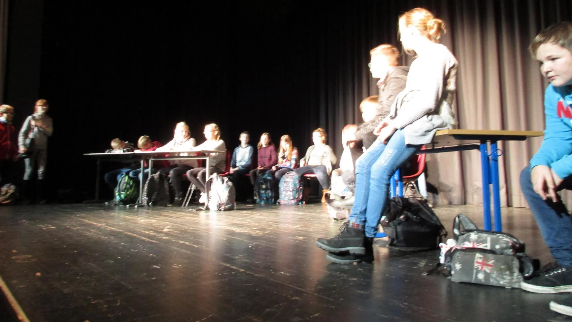 Ein selbst geschriebenes Theaterstück präsentierte die Klasse 6c mit Lehrerin Frederike Bröer im Rahmen des Monatstreffs in der Aula des Schulzentrums. In Anlehnung an das Buch "Der Klassenking", welches im Rahmen des Deutschunterrichtes gelesen wurde, entstand ein umfassendes Werk, welches Elemente von Schauspiel, Tanz und Sport vereinte. Die gesamte Klasse beteiligte sich an einer tollen Aufführung, die die Themen "Klassengemeinschaft" und "Zusammenhalt" nicht nur auf die Bühne brachte, sondern auch praktisch vorlebte.