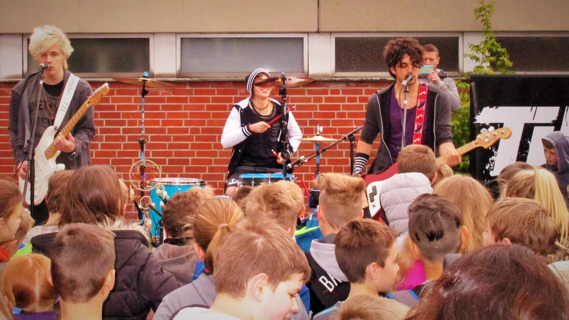 Eine tolle Überraschung zum Wochenende gab es heute auf dem Schulhof: Die Rockband TIL gab im Rahmen ihrer "TILMYSCHOOL-Tour" ein Konzert auf dem Schulhof. Mit frischem Rocksound und ansteckend guter Laune begeisterten Enis, Dennis und Jona nicht nur die weiblichen Zuhörer. Ein großer Dank geht nicht nur an die Band, sondern auch an Schulsozialarbeiter Tobias Höning, der den Auftritt organisiert hat.