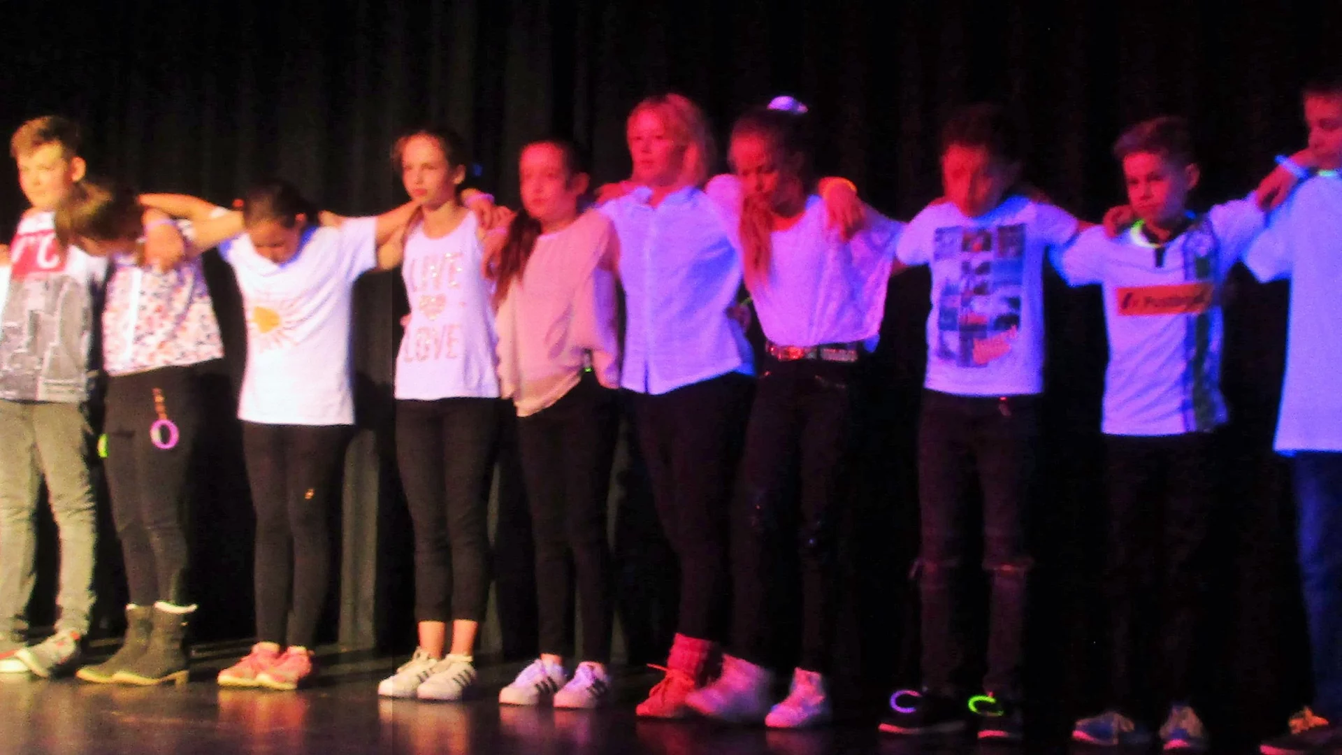 ...lautete der Titel der Schwarzlicht-Show, zu der die Klasse 5b mit dem Leitungsteam Julia Krippendorf und Sebastian Meissner im Rahmen des Monatstreffs eingeladen hatte. Viele Eltern und die gesamte Jahrgangsstufe verfolgten gebannt die märchenhafte Reise, in deren Verlauf viele geheimnisvolle Türen geöffnet wurden, hinter denen Überraschungen warteten. Die Kombination aus Schwarzlichteffekten, Musik und Choreographie überzeugte das Publikum, welches der Klasse 5b viel Applaus spendete.