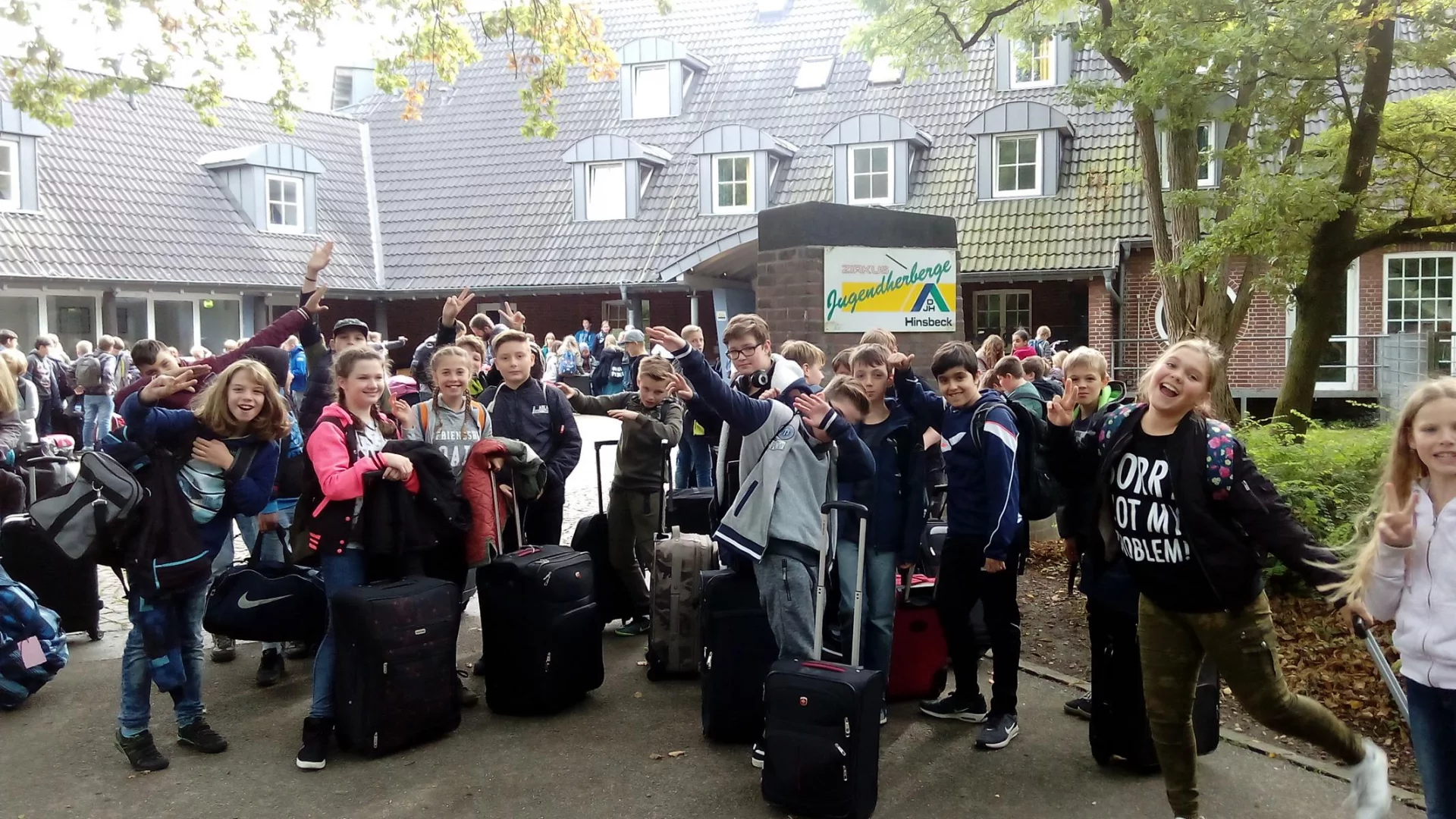 Endlich! Die langersehnte Klassenfahrt ist da. Die Schülerinnen und Schüler des 6. Jahrgangs verbringen mit ihren Lehrerinnen und Lehrern einige erlebnisreiche Tage in der Jugendherberge Nettetal-Hinsbeck. Ein vielfältiges Programm mit Erlebnissen vom Geo-Caching bis zur Stadtrallye lässt keine Langeweile aufkommen. Auch ein Besuch im Greifvogelpark ist geplant.