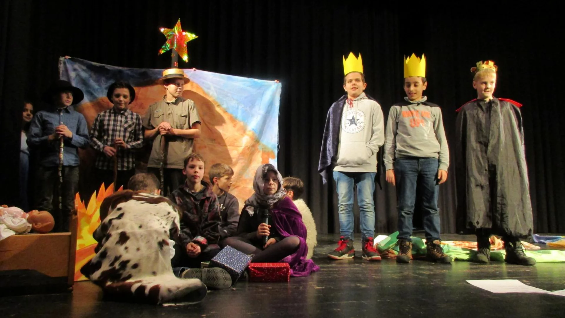 Die Weihnachtsgeschichte in englischer Sprache präsentierte die Klasse 5c mit dem Klassenleitungsteam Silke Daldrop und Jörg Leefers im Rahmen des Monatstreffs in der Aula des Schulzentrums. Die gelungene Aufführung war von der 5c sowohl im Unterricht in den Fächern Englisch und Kunst als auch in den Klassenstunden vorbereitet worden. Das Publikum -bestehend aus den Schülerinnen und Schülern des Jahrgangs und vielen Eltern- fühlte sich bestens unterhalten wurde auf die bevorstehenden Weihnachtstage eingestimmt.