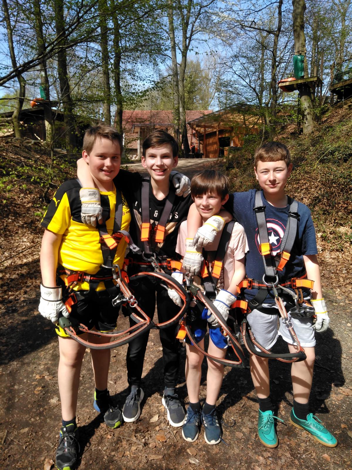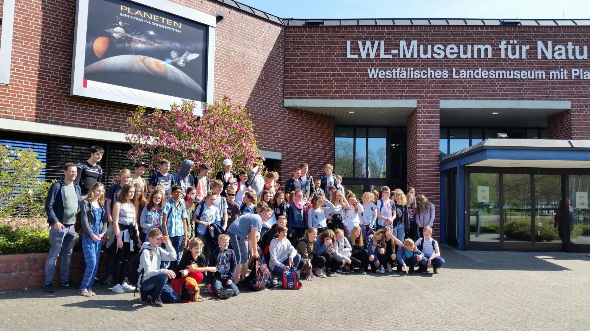 Bei perfektem Ausflugswetter machten sich unsere siebten Klassen mit ihren Klassenleitungsteams heute morgen auf den Weg zum Wandertag. Die Klassen 7a und 7b suchten eine sportliche Herausforderung und besuchten den Kletterwald in Ibbenbüren. Die übrigen drei Klassen fuhren nach Münster. Dort stand zunächst ein Besuch des Planetariums auf dem Programm. Anschließend galt es nach einem Spaziergang am Aasee noch eine Stadtrallye zu bewältigen.