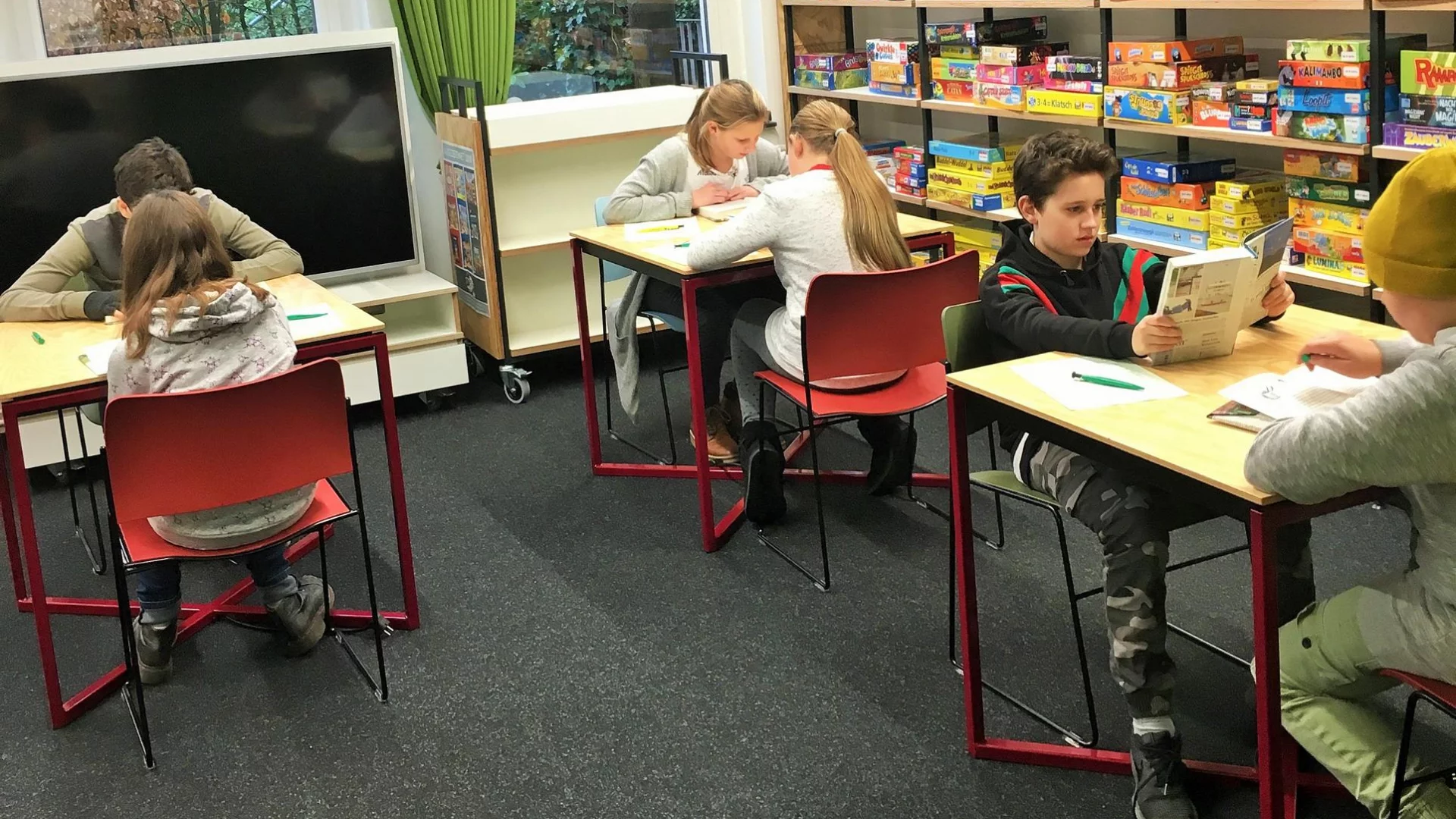 ... mit einem Buch heißt das Projekt, das die Sekundarschule mit der Stadtbücherei St. Felizitas jetzt erprobt hat. Beim „Blind Date mit Buch“ lasen Schülerinnen und Schüler verschiedene Bücher, ohne den Titel oder das Cover des Buches zu kennen. Dabei wurde jedes Buch für insgesamt fünf Minuten gelesen, anschließend gemeinsam bewertet und den Mitschülern vorgestellt. Die Aktion ist ein Baustein der Kooperation zwischen Sekundarschule und Stadtbücherei im Rahmen der "Bildungspartner NRW".