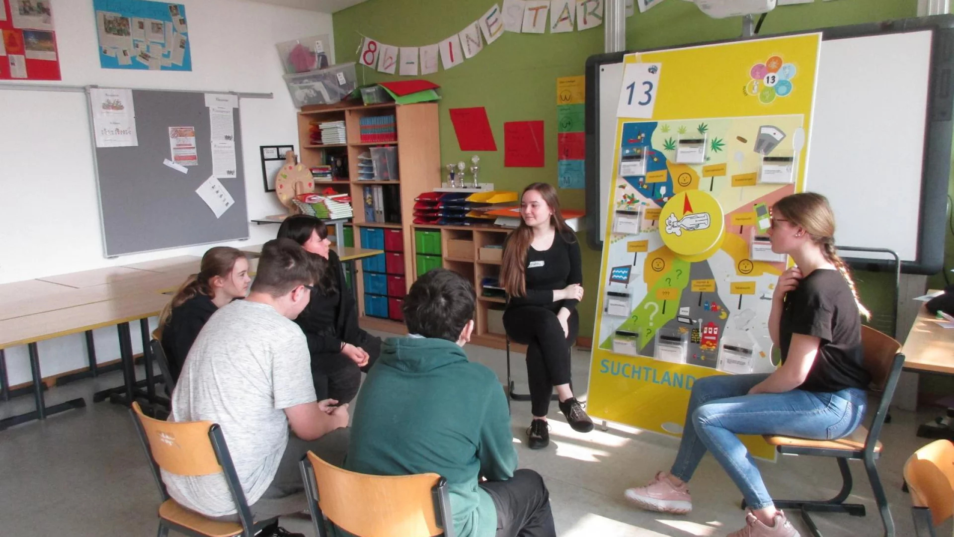 Das „Body- und Grips-Mobil“ ist ein Programm zur ganzheitlichen Gesundheitsförderung des Jugendrotkreuzes. Das Programm richtet sich an Kinder und Jugendliche zwischen 12 und 15 Jahren. 18 verschiedene Stationen aus fünf zentralen und jugendrelevanten Themengebieten bilden den "Gesund mit Grips"-Parcours. Hier dreht sich alles um Bewegung, Ernährung, soziales Miteinander, Sexualität, Sucht sowie „Körper und Geist“. Zu jedem Themengebiet warteten Informations-, Wahrnehmungs- und Experimentierstationen auf die Schülerinnen und Schüler der Jahrgangsstufe sieben, die sich einen Schultag lang in kleinen Gruppen mit den genannten Themen beschäftigten.Die vielen spannenden Stationen wurden nicht nur von den Mitarbeitern des Jugendrotkreuzes, sondern auch von Schülerinnen und Schülern der Jahrgangsstufe 10 der Haupt- und Realschule betreut. Für die finanzielle Unterstützung bedanken wir uns bei unserem Förderverein.