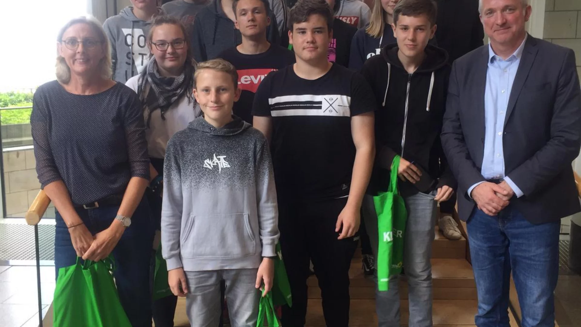 Für den Wahlpflichtkurs Sozialwissenschaften mit Kursleiterin Sandra Altemöller stand ein Besuch in der Landeshauptstadt auf dem Programm. In Düsseldorf besichtigten die Schülerinnen und Schüler der Jahrgangsstufe 9 nicht nur den Landtag, sondern konnten dort selbst in die Rolle der Politiker schlüpfen. Im Plenarsaal nahmen die Gäste aus Lüdinghausen Platz und übernahmen die Funktionen der Abgeordneten, die dort normalerweise sitzen. Unter anderem hielten unsere Schülerinnen und Schüler dort Reden, die im Unterricht eingeübt worden waren. Anschließend gab es ein Treffen mit dem Landtagsabgeordneten Norwich Rüße, der Einblicke in den Alltag des Landtagsabgeordneten vermittelte, Fragen beantwortete und aufzeigte, wie eng Politik und "echtes Leben" miteinander verbunden sind.