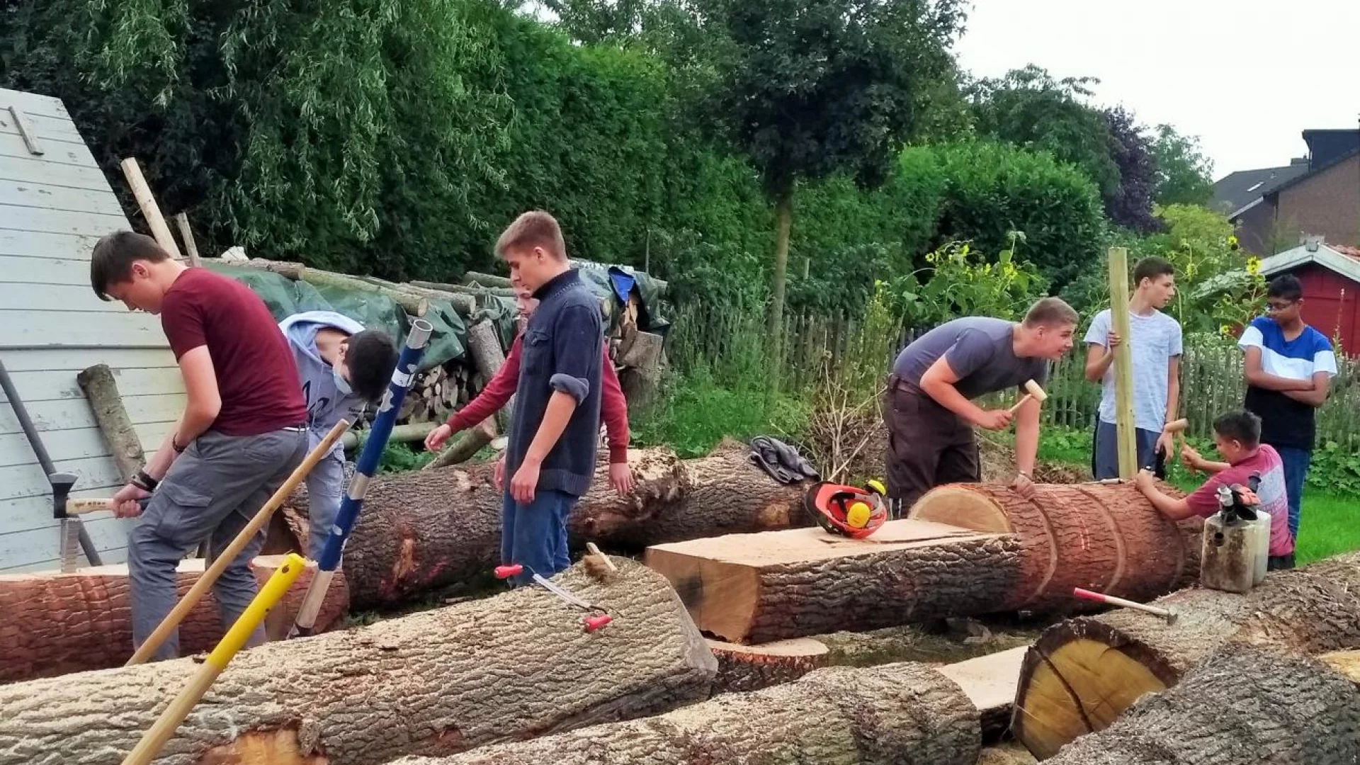 Ihre praktischen Fähigkeiten konnten heute einige Schülerinnen und Schüler der Jahrgangsstufe 10 unter Beweis stellen. Bei einem gemeinsamen Projekt vom Umweltamt des Kreises Coesfeld, dem Naturschutzzentrum Darup und dem "Kommunalen Integrationszentrum" wurden in Darup Fahrradständer und Sitzgelegenheiten aus Massivholz hergestellt. Schwerpunkte des Projekts unter der Schirmherrschaft von Landrat Dr. Schulze Pellengahr sind sowohl der Umweltschutz als auch die Integration. Die 16 Schülerinnen und Schüler der Sekundarschule, die von Remziye Arslan und Jutta Nolte begleitet wurden, waren mit Begeisterung bei der Sache. Die entstanden Produkte werden im Kreisgebiet zur öffentlichen Nutzung aufgebaut.