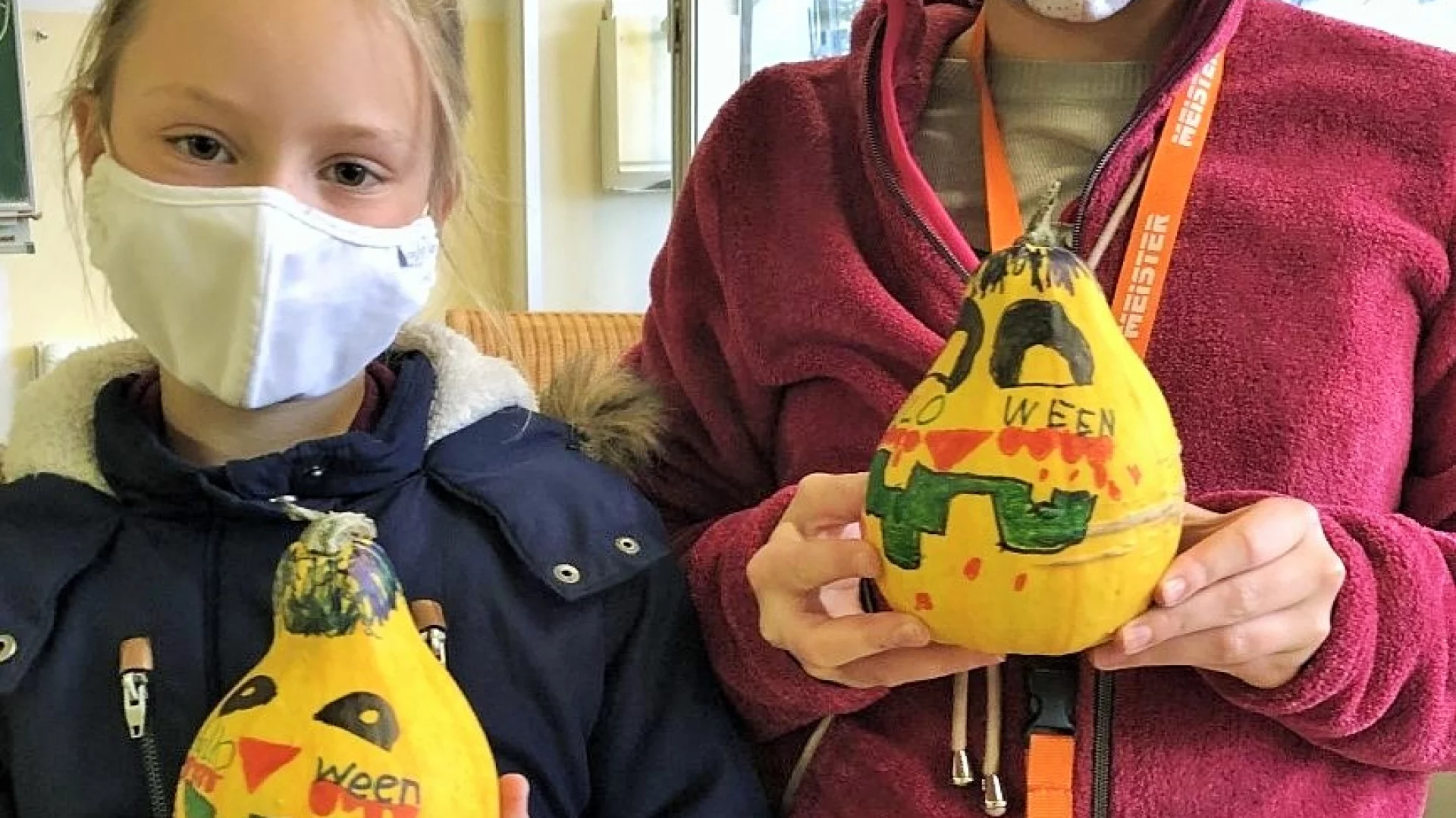 Der Gang von Tür zu Tür fällt dieses Jahr wohl aus. Ein bisschen Halloween darf trotzdem sein: In der Mittagspause hatten Schülerinnen und Schüler der Jahrgangsstufen fünf und sechs die Gelegenheit, unter Corona-Hygienebedingungen Kürbisse zu gestalten und hatten dabei großen Spaß. Durch verschiedene kreative Ideen unter Anleitung der Praktikantinnen der Schulsozialarbeit Philis Krämer und Inga Trahe sind so individuelle Kürbisgesichter entstanden, die mit nach Hause genommen werden durften.