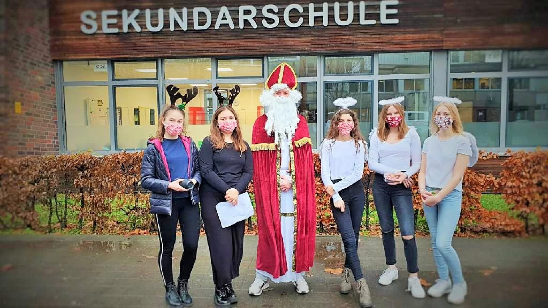 Viele, viele Nikolausgrüße -sowohl schriftlich als auch in Schokoladenform- hatte der Nikolaus heute in der Sekundarschule zu verteilen. Zum Glück war er nicht allein: Ein ganzes Team aus -in diesem Jahr gut maskierten- Engeln und Rentieren half ihm, die verantwortungsvolle Aufgabe zu bewältigen. Organisiert und begleitet wurde die Nikolaus-Aktion von der Schülervertetung mit den SV-Lehrerinnen Julia Büttner und Marina Weyring. Vielen Dank!