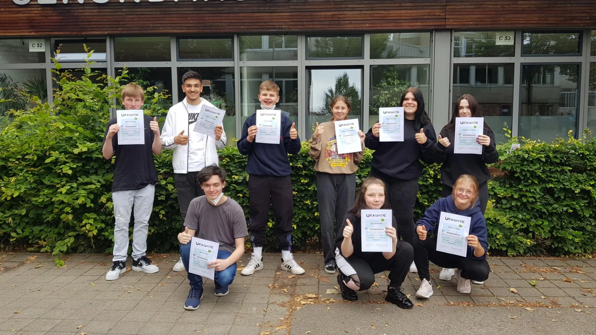 Eine Urkunde erhielten unsere Sanitäterinnen und Sanitäter für Ihre wertvollen und treuen Dienste in den Pausen. Ob es ein aufgeschlagenes Knie ist oder der Krankenwagen gerufen werden muss - der Schulsanitätsdienst hilft. Die Urkunden wurden von Jutta Nolte -der Leiterin des Schulsanitätsdienstes- übereicht. Vielen Dank für den Einsatz!