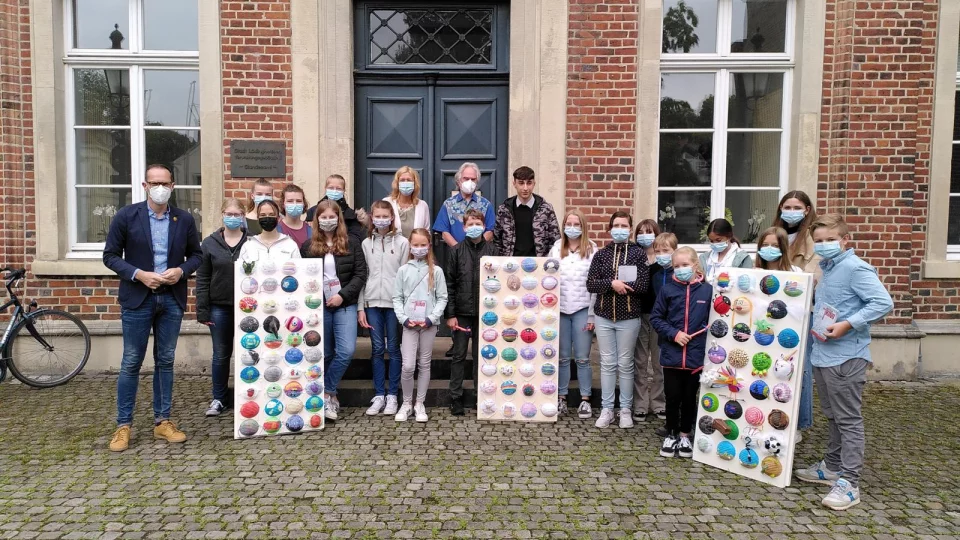 Gleich 14 Schülerinnen und Schüler der Sekundarschule wurden für Ihre tollen Arbeiten im Rahmen des Kunstprojektes "Kopf hoch - Maske auf" ausgezeichnet. In Anweseneheit des Künstlers und Projekt-Initiators Alfred Gockel wurden die Geld- und Sachpreise durch Bürgermeister Ansgar Mertens verliehen. Herzlichen Glückwunsch zu diesem tollen Ergebnis!
