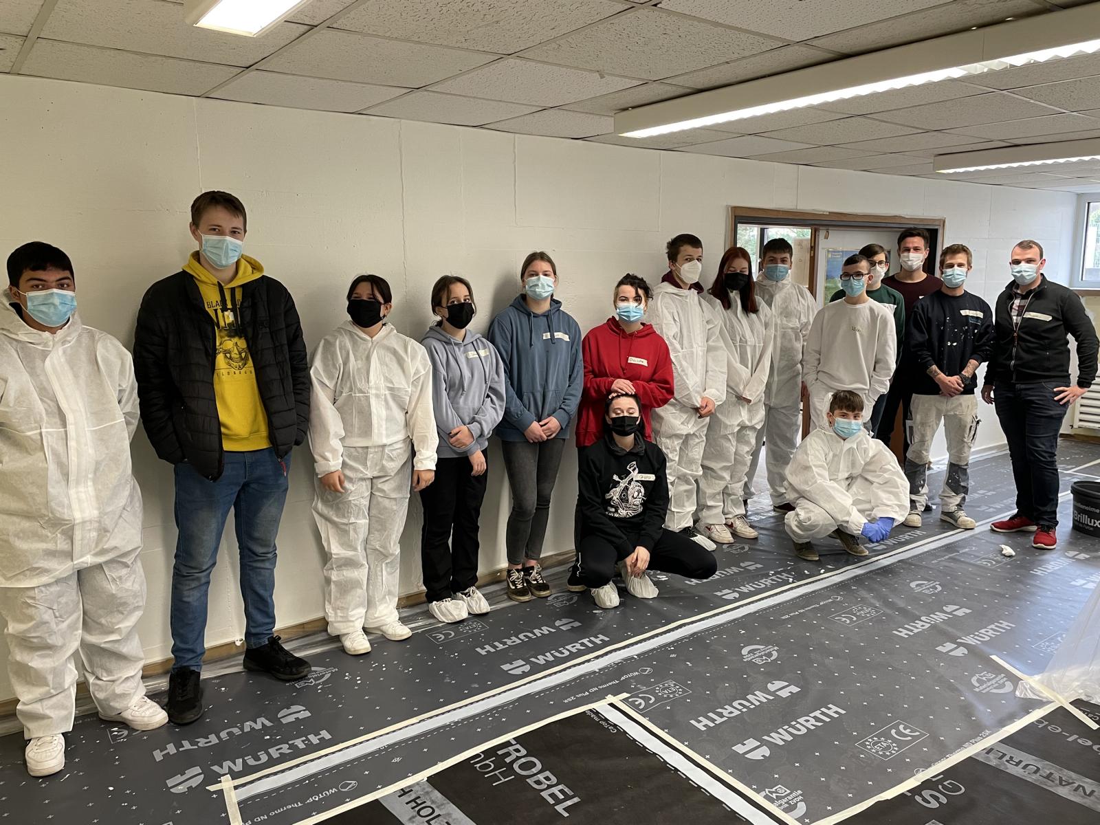Im Rahmen der Aktion "Betrieb trifft Schule" wurde jetzt der Aufenthaltsraum für unsere Schülerinnen und Schüler der Jahrgänge 9 und 10 verschönert. Angeleitet von den Profis der Malerfirma Krusen waren 14 Schülerinnen und Schüler aus den Jahrgangsstufen 8 und 9 für die Schule im Einsatz. Vermittelt wurde der Kontakt durch die Firma Brillux. Schulisch wurde das Projekt durch unsere SV-Lehrerinnen Julia Büttner und Marina Weyring initiiert und begleitet. Allen Beteiligten ein herzliches Dankeschön!