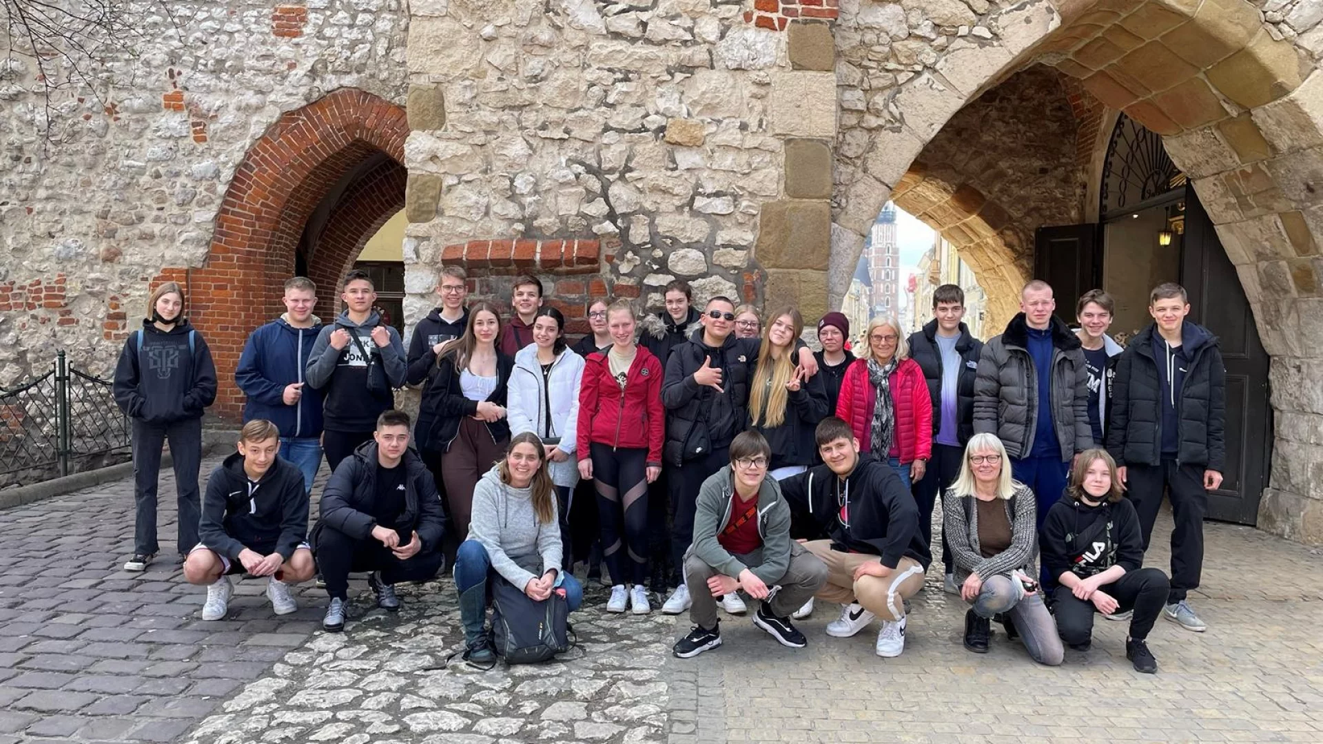 Zum ersten Mal besuchte eine Gruppe der Sekundarschule Lüdinghausen Orte in Polen, die an den Holocaust erinnern. Am 06.4.22 brachen 24 Schülerinnen und Schüler der Jahrgangsstufe 10 mit den Lehrerinnen Frauke Schmauß, Anja Helfen und Gitti Mauritz zu einer mehrtägigen Gedenkstättenfahrt auf. In Krakau angekommen, machte man einen ersten Zwischenstopp an einer Caritas-Sammelstelle, um mitgebrachte Spenden für ukrainische Flüchtlinge abzugeben, die sehr dankbar entgegen genommen wurden. Ausgehend von den Schauplätzen im Film „Schindlers Liste“, standen in Krakau unter anderem das ehemalige Konzentrationslager Plaszow, die Fabrik von Oskar Schindler und das ehemalige jüdische Ghetto auf dem Programm. Der Schwerpunkt der Reise lag jedoch auf dem Besuch der Gedenkstätte des ehemaligen Konzentrationslagers und Vernichtungslagers Ausschwitz und Auschwitz-Birkenau. Dort stellten die Schülerinnen und Schüler nach einer sechsstündigen Führung im stillen Gedenken, Kerzen auf und legten Erinnerungssteine nieder. Hierbei zeigten sich die Schülerinnen und Schüler sehr interessiert und bewegt. Viele empfehlen, auch in der Zukunft eine Gedenkstättenfahrt für den Abschlussjahrgang der Sekundarschule anzubieten.