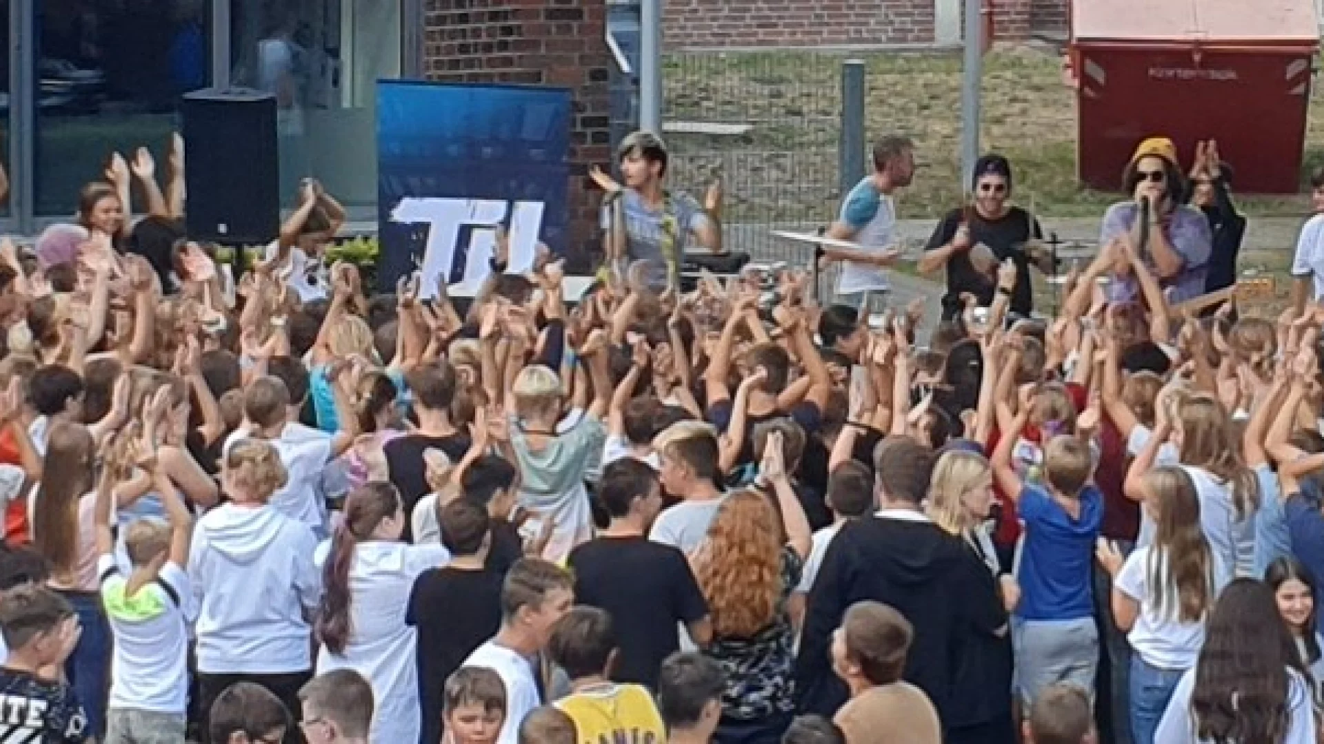 Überraschung für die Schülerinnen und Schüler der Sekundarschule: Statt wie erwartet Unterricht zu haben, ging es im Rahmen des Nachmittagsunterrichtes auf den Schulhof, wo die Band TIL auf der Bühne stand. Bereits zum dritten Mal waren die drei Jungs in Lüdinghausen zu Gast, die im Rahmen ihrer mehrjährigen "TILmySchool"-Tour bereits 2017 an der Sekundarschule gespielt hatten. Heiß begehrt waren nachdem Konzert auch Selfies mit Dennis, Jona und Enis. Für Til geht´s jetzt weiter nach Hamburg, bevor Ende September dann das neue Album "L.A.U.T" erscheint.