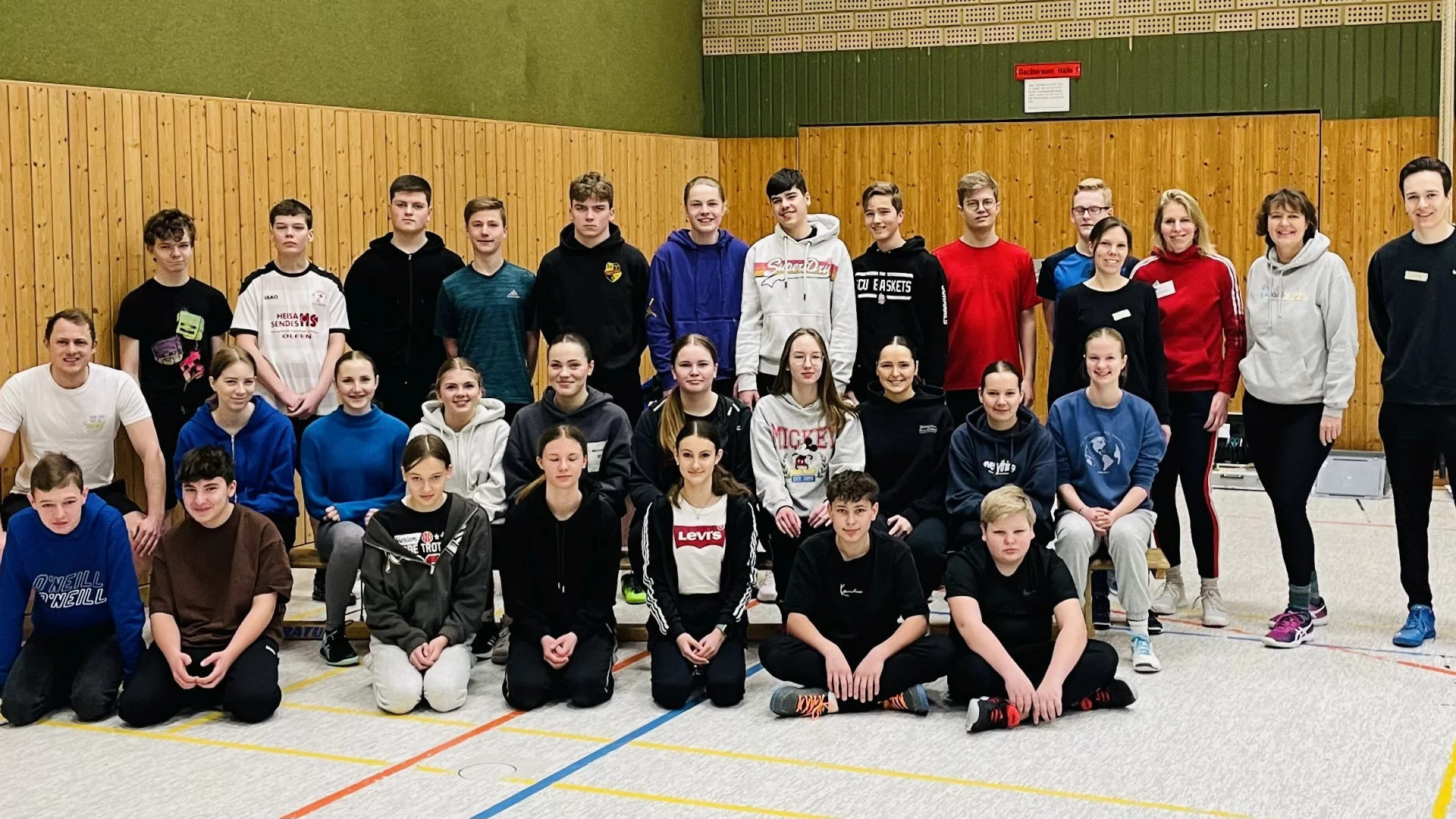 Die Sekundarschule Lüdinghausen, das Gymnasium Canisianum und der Kreissportbund waren Ausrichter der Sporthelfer-Ausbildung, die von Donnerstag bis Samstag in der Sporthalle der Sekundarschule stattfand. Die Jugendlichen beschäftigten sich mit vielen verschieden Themen, unter anderem Sicherheit im Schulsport, Erste Hilfe, Koordination und Kondition und das Auftreten vor einer Gruppe. Aber auch Trendsportarten, kleine Spiele und verschiedene Kennenlernspiele wurden erprobt. Bereits im letzten Jahr fand eine Kooperation mit dem Antonius Gymnasium statt. Die frisch ausgebildeten Sporthelferinnen und Sporthelfer werden ihre neuen Fähigkeiten beim diesjährigen Sponsorenlauf der Sekundarschule unter Beweis stellen. Seitens der Sekundarschule wird die Ausbildung von Andrea Heines geleitet, Jutta Nolte übernahm die Ausbildung im Bereich "Erste Hilfe".