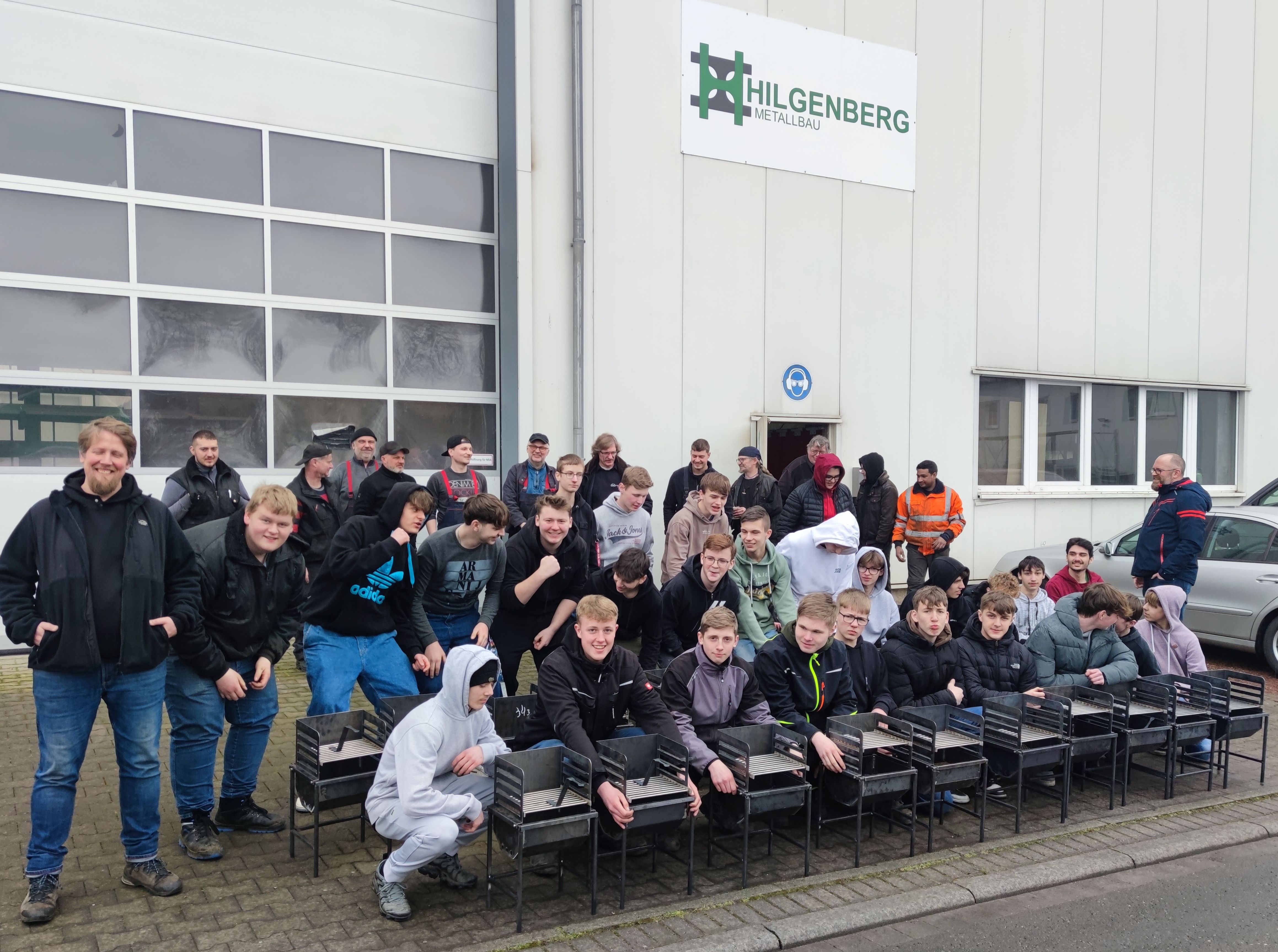 Vielleicht werde ich Schlosser, Schweißer oder Metallbauer? Diese Frage wird einige der 30 Schülerinnen und Schüler bewegen, die in der vergangenen Woche an der Exkursion zur Firma "Hilgenberg Metallbau" nach Olfen teilnahmen. Hier konnten sie nicht nur die Firma besichtigen, sondern wurden selber aktiv: Alle konnten am Ende des Tages einen hochwertigen, selbst gebauten Grill mit nach Hause nehmen. Abgerundet wurde der erlebnisreiche Ausflug mit einem gemeinsamen Grillen mit der Belegschaft. Im Rahmen der Berufswahlvorbereitung soll eine langfristige Kooperation zwischen "Metallbau Hilgenberg" und der Sekundarschule Lüdinghausen entstehen. Das Team der Sekundarschule bedankt sich für den tollen Tag und freut sich auf die Zusammenarbeit.
