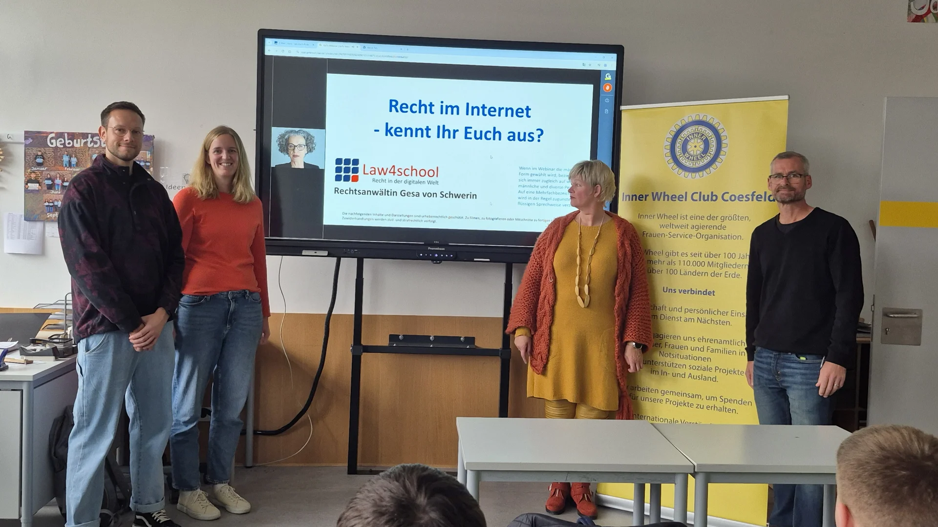 Finanziert wurde das eindrückliche und lehrreiche Webinar durch den Inner Wheel Club Coesfeld, der Schulen in der Region seit Jahren durch die Kooperation mit Law4school im Kampf gegen Cybermobbing unterstützt. Frau Andrea Buss vom Vorstand des IWC Coesfeld nahm persönlich am Webinar teil. Die Sekundarschule Lüdinghausen arbeitet seit mehreren Jahren unter Federführung von Schulsozialarbeiterin Silke Brutzki mit dem IWC Coesfeld und Law4school zusammen.