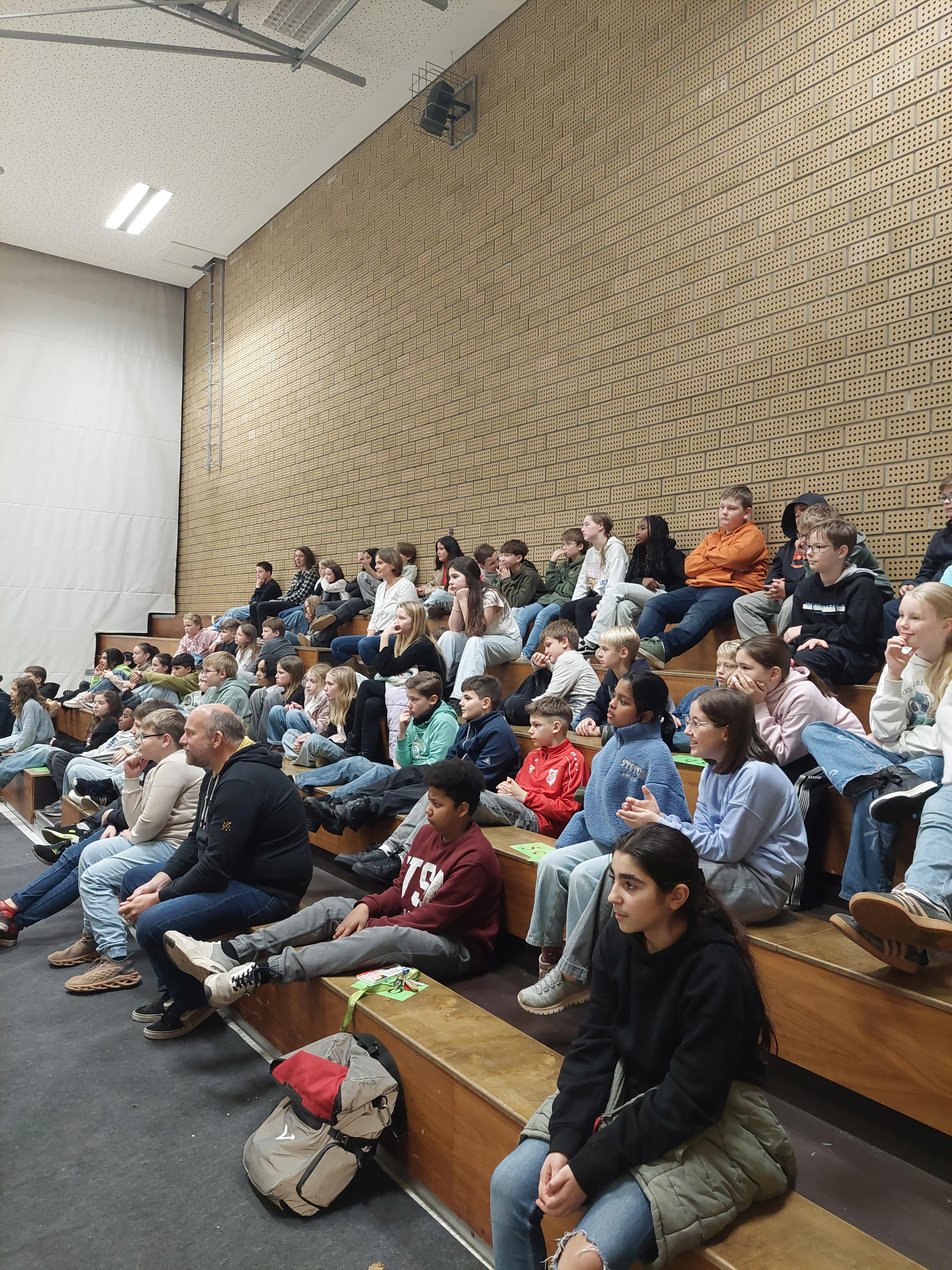 Wer meint, dass junge Menschen nicht für die Oper zu begeistern seien, sollte sich einmal die "Junge Oper" aus Detmold anschauen. Nach einer humorvollen Einführung in die Opernwelt begeisterten die Sängerinnen und Sänger mit tollem Schauspiel und mitreißender Choreographie. Unsere Schülerinnen und Schüler der fünften Klassen sahen "Abu Hassan" von Carl Maria von Weber, der 6. Jahrgang genoss "Bastien et Bastienne" von Wolfgang Amadeus Mozart. Dieses fesselnde interaktive Opernerlebnis konnten wir unseren Schülerinnen und Schülern auch dank der finanziellen Unterstützung durch den Förderverein bieten. Ein herzlicher Dank geht an Renate Forsthövel für die perfekte Organisation.