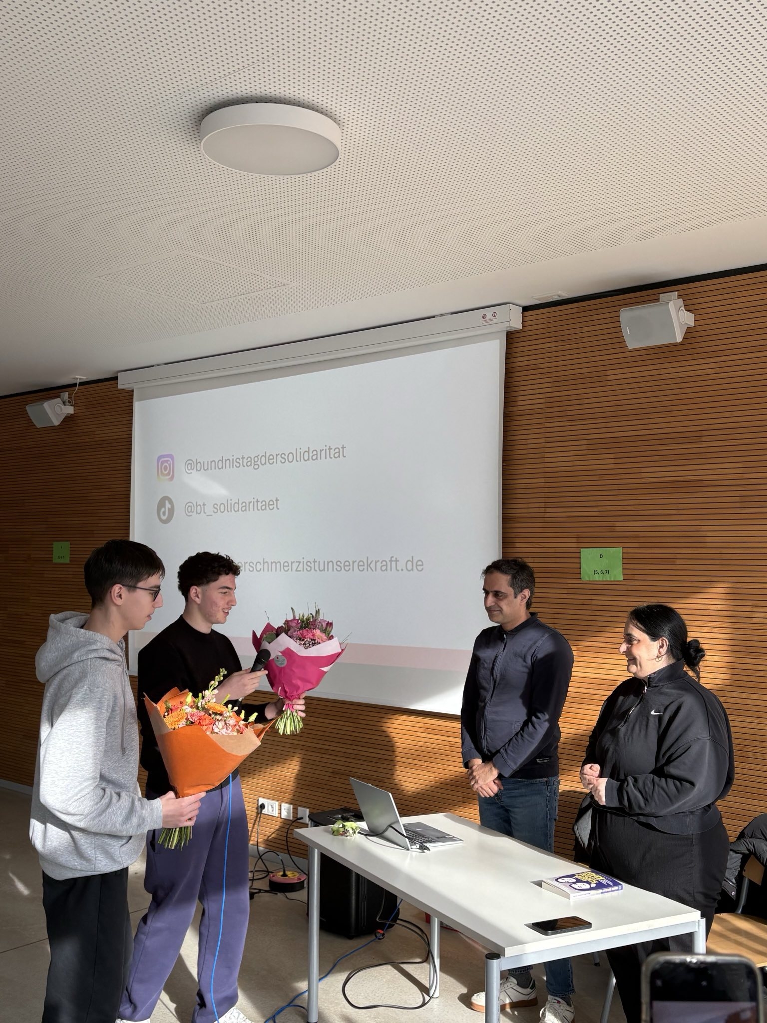 Die Arbeitsgruppe “Schule ohne Rassismus – Schule mit Courage” hatte Gamze Kubaşık und Ali Şirin eingeladen, um über die Folgen von neonazistischem Terrorismus, Diskriminierung und Rassismus ins Gespräch zu kommen
