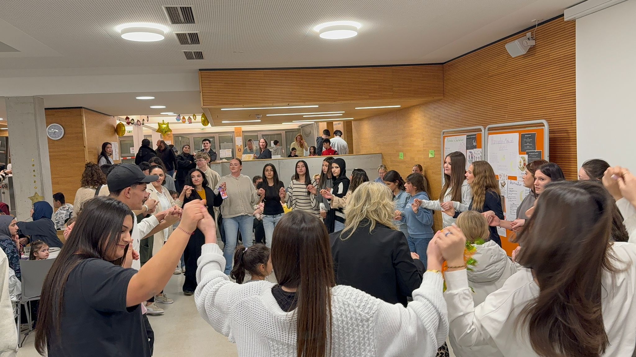 In der Mensa der Sekundarschule Lüdinghausen fand zum zweiten Mal ein gemeinsames Fastenbrechen (Iftar) statt. Mit weit über 200 Teilnehmenden war der Abend ein beeindruckendes Zeichen für Zusammenhalt und gelebte Gemeinschaft. Nach einem von Schülerinnen und Schülern gestalteten Programm wurde gemeinsam das Fasten gebrochen. Ein vielfältiges Buffet, zu dem zahlreiche Familien beigetragen hatten, spiegelte die kulturelle Vielfalt unserer Schulgemeinschaft wider und trug maßgeblich zu einer herzlichen und offenen Atmosphäre bei. Perfekt organisiert wurde die Veranstaltung wieder von Remziye Arslan (MPT Integration) und Nihal Missaoui (Lehrerin Islamunterricht). Ein Dank gilt darüber hinaus auch den engagierten Schülerinnen und Schülern der Islamkurse, dem Kurs „Darstellen und Gestalten“ sowie der Tanz-AG.