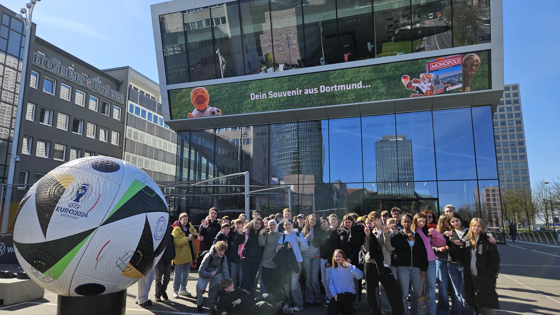 Die Jahrgangsstufe 7 verbringt einen Projekttag im Deutschen Fußballmuseum in Dortmund. Nach einer Entdeckungstour durch die Dauerausstellung stehen zum Thema "Vielfalt" interaktive Übungen, Spiele und Aktivitäten an. Ziele sind Förderung von Toleranz, Respekt und Integration sowie der Abbau von Vorurteilen und diskriminierendem Verhalten. Ähnlich wie im Klassenzimmer werden die Erkenntnisse anschließend in der Gruppe reflektiert und mit modernen Methoden entwickeln die Schülerinnen und Schüler ein Gespür für die Bedeutung von Vielfalt. Die Aktion ist fester Bestandteil der vielfältigen Aktivitäten im Rahmen des Programms "Schule ohne Rassismus - Schule mit Courage".